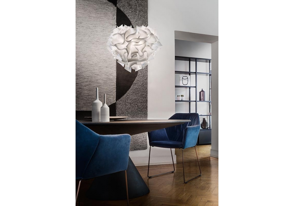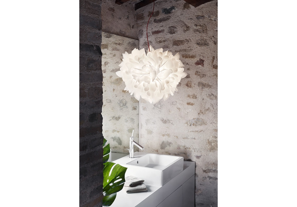 Veli Foliage von Adriano Rachele für Salmp entworfen ist eine Hängeleuchte, die vollständig aus weißem Opalflex® besteht. Bei der verwendeten Lichtquelle handelt es sich um eine dimmbare Glühfaden-LED. Veli Foliage ist in zwei verschiedenen Größen und Ausführungen erhältlich.