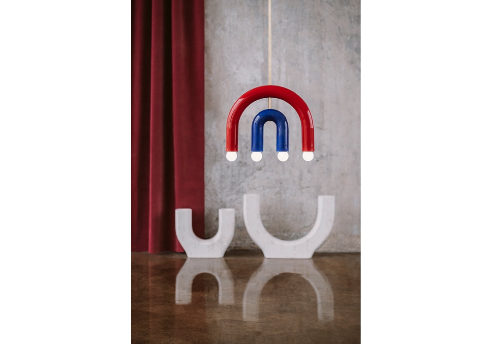 TRN C1 von Pani Jurek entworfen, ist eine Hängeleuchte mit Metallstruktur und handemailliertem Keramikdiffusor.