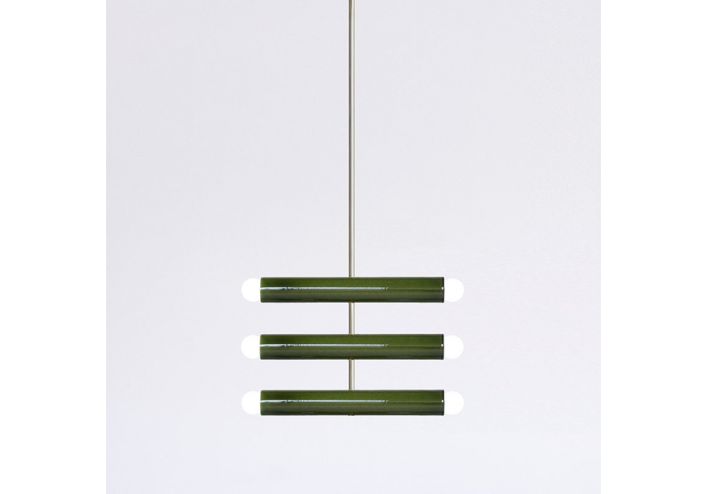 TRN C4 von Pani Jurek entworfen, ist eine Hängeleuchte mit Metallstruktur und handemailliertem Keramikdiffusor.