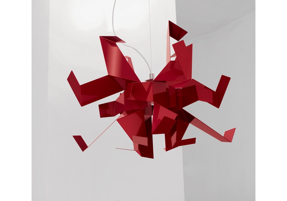 Glow, von Enrico Franzolini & Vicente García Jiménez für Pallucco entworfen ist eine Hängelampe mit einer destrukturierten Form, die vollständig aus Metallapplikationen besteht. Als Lichtquelle dient eine E27-Fassung vom Typ LED, Halogen oder Glühlampe. Glow ist in verschiedenen Modellen und Ausführungen erhältlich.