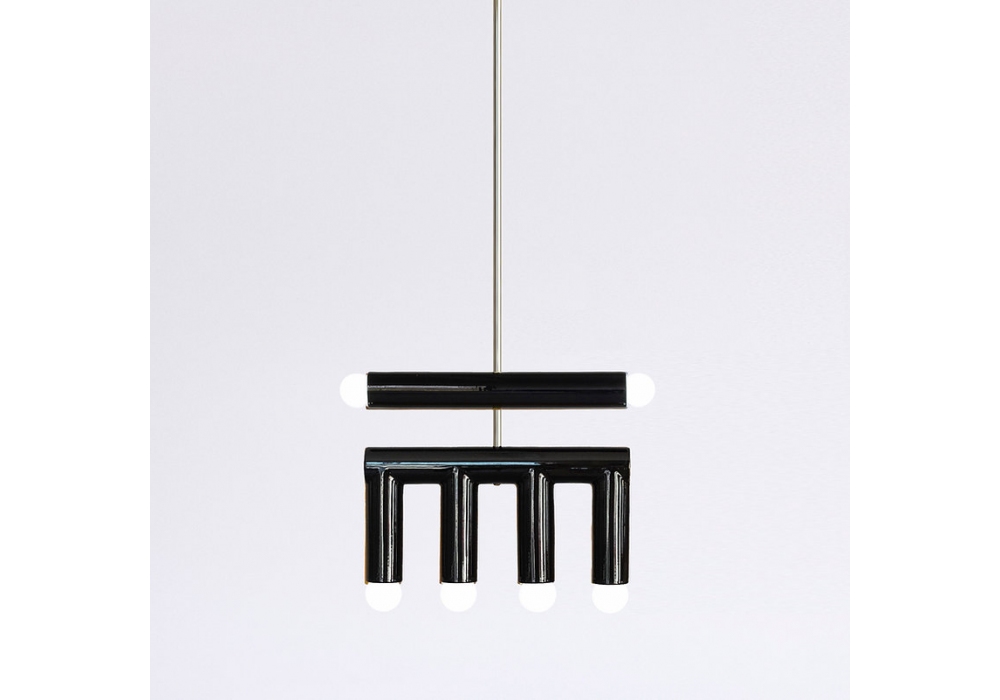TRN D2 von Pani Jurek entworfen, ist eine Hängeleuchte mit Metallstruktur und handemailliertem Keramikdiffusor.