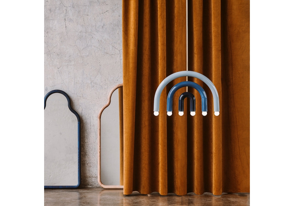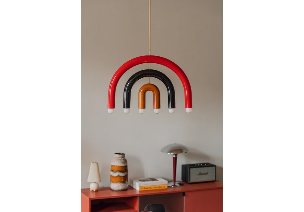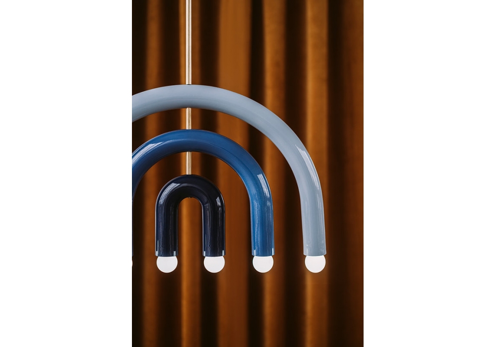 TRN F1 von Pani Jurek entworfen, ist eine Hängeleuchte mit Metallstruktur und handemailliertem Keramikdiffusor.
