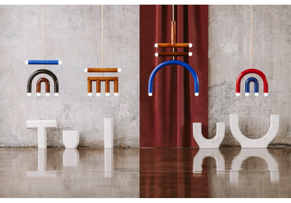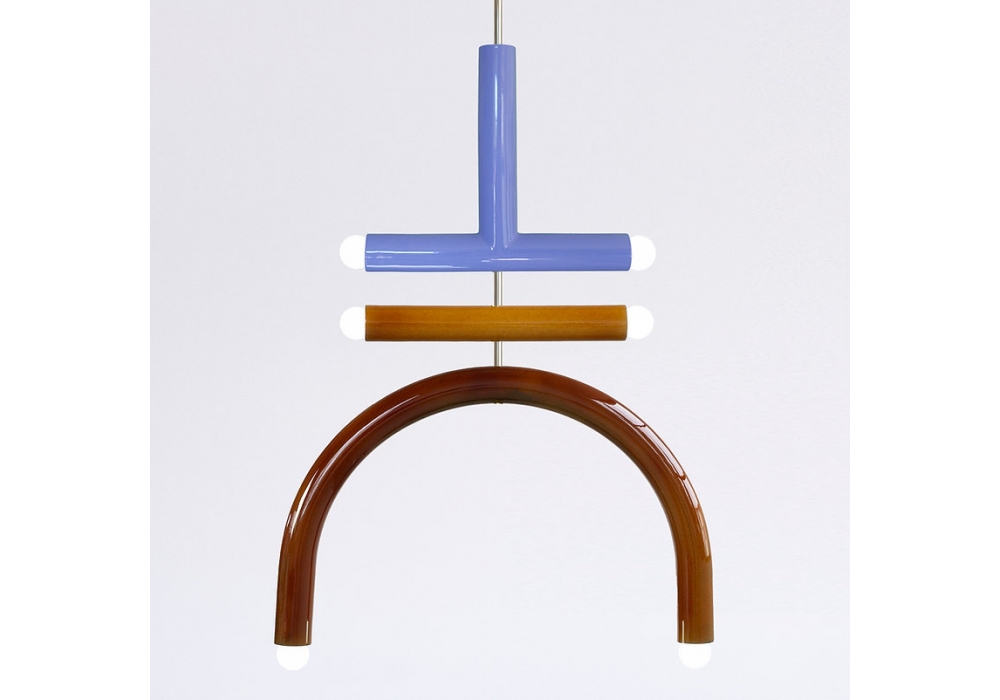 TRN F2 von Pani Jurek entworfen, ist eine Hängeleuchte mit Metallstruktur und handemailliertem Keramikdiffusor.