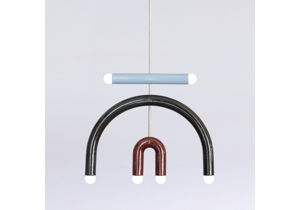 TRN F3 von Pani Jurek entworfen, ist eine Hängeleuchte mit Metallstruktur und handemailliertem Keramikdiffusor.