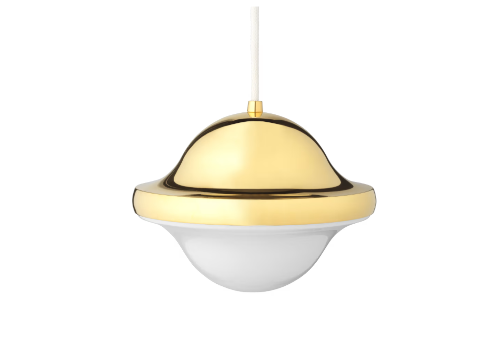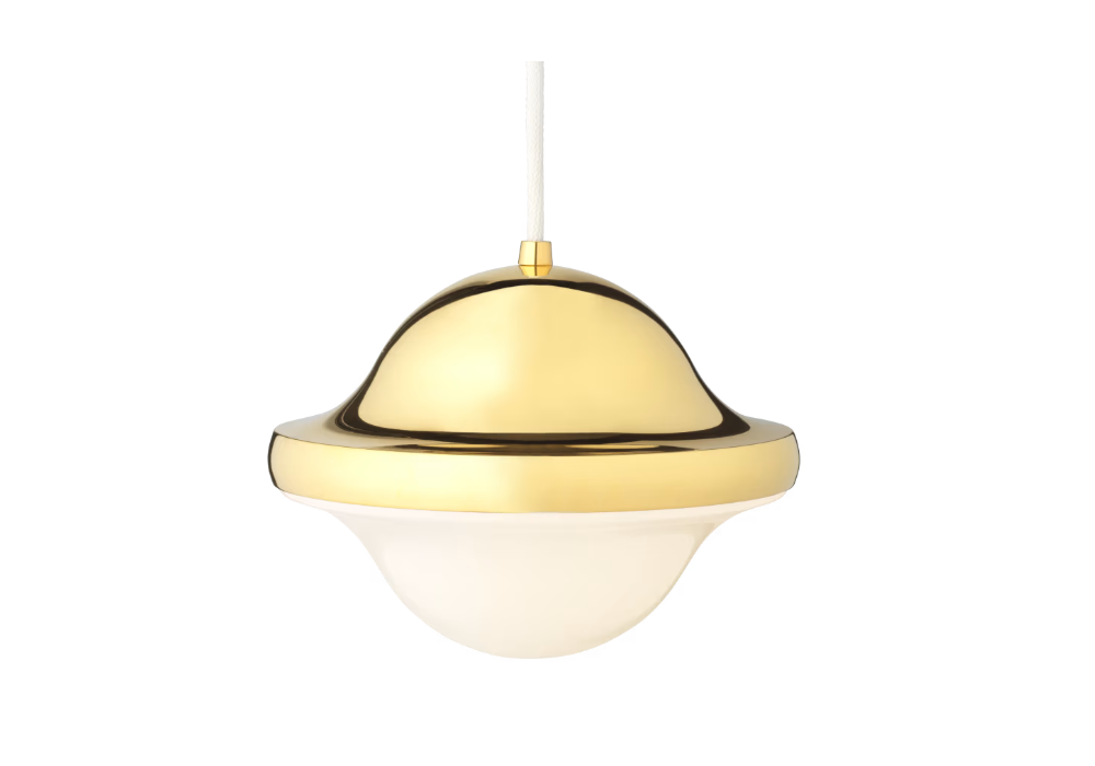 HK20 Bubi Pendelleuchte von Henning Koppel für Carl Hansen & Søn entworfen, ist eine Pendelleuchte mit opalem Acrylschirm und verchromtem oder messingbeschichtetem Stahldiffusor.