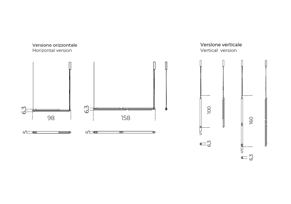 | Abmessungen | Tratto Horizontal_ Ø 6,3 x 98 cm; Tratto Horizontal_ Ø 6,3 x 158 cm; Tratto Vertical_ Ø 6,3 x 100 cm; Tratto Vertical_ Ø 6,3 x 160 cm. |