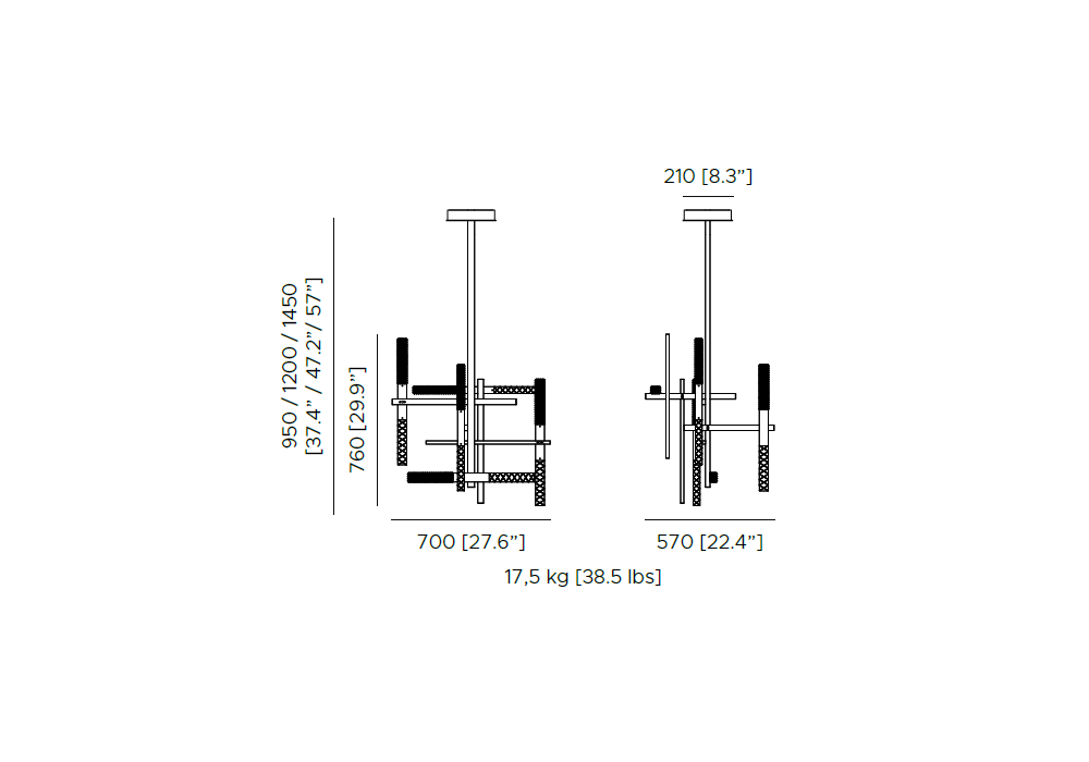 Mikado von Massimiliano Raggi für Contardi entworfen, ist eine Hängeleuchte mit rechteckigen Messingrohren und schräg angeordneten Würfeln aus graviertem Kristall. Die integrierten LED-Lichtquellen unterstreichen die Brillanz des Kristalls und bieten gleichzeitig eine hohe Lichtleistung. Dimmbar mit Phasenanschnitt (Triac), DALI, 1–10 V oder CASAMBI-Systemen.