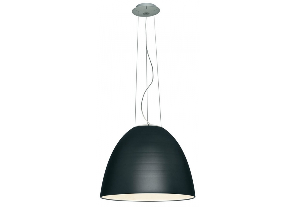 Nur von Ernesto Gismondi für Artemide entworfen ist eine runde Hängeleuchte aus Aluminium und einer oberen Kappe aus sandgestrahltem Glas. Als Lichtquelle kommt eine dimmbare LED zum Einsatz. Nur verfügt über verschiedenes Zubehör wie Blendschutzkuppel und Farblichtfilter.