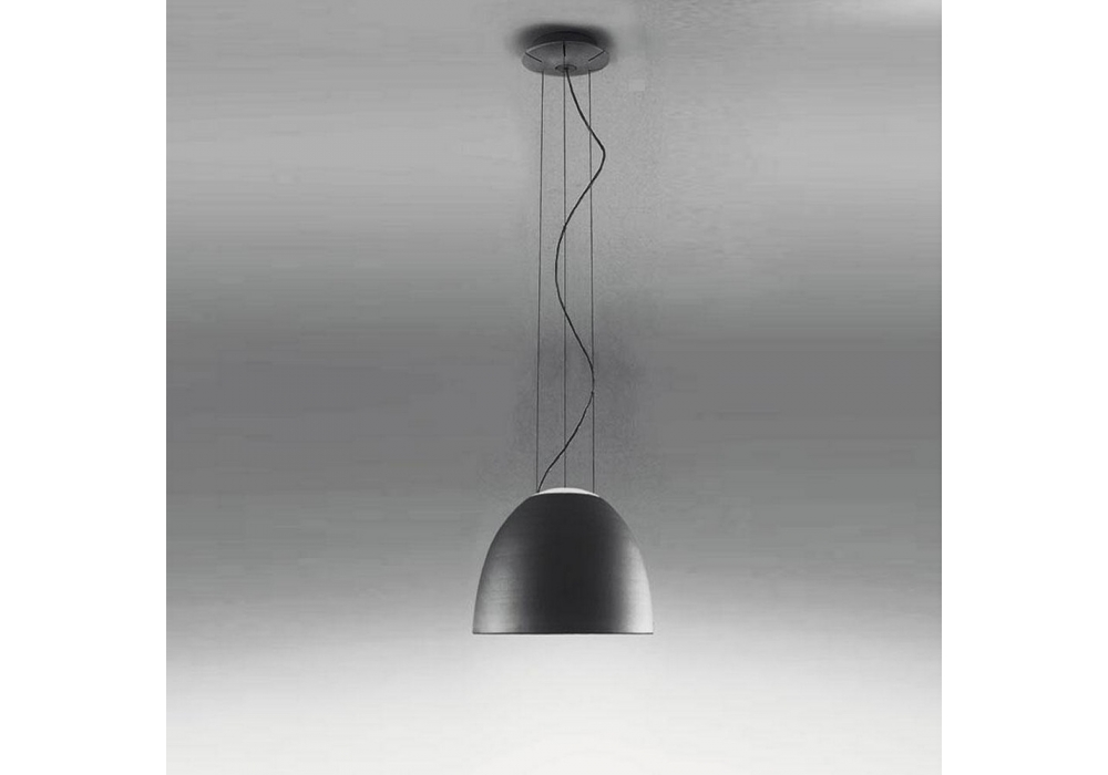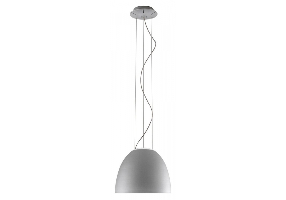 Nur Mini von Ernesto Gismondi für Artemide entworfen, ist eine runde Hängeleuchte mit einer Aluminiumkuppel und einer oberen Kappe aus sandgestrahltem Glas. Nur Mini ist in verschiedenen Ausführungen und mit oder ohne Lichtfilterzubehör erhältlich.