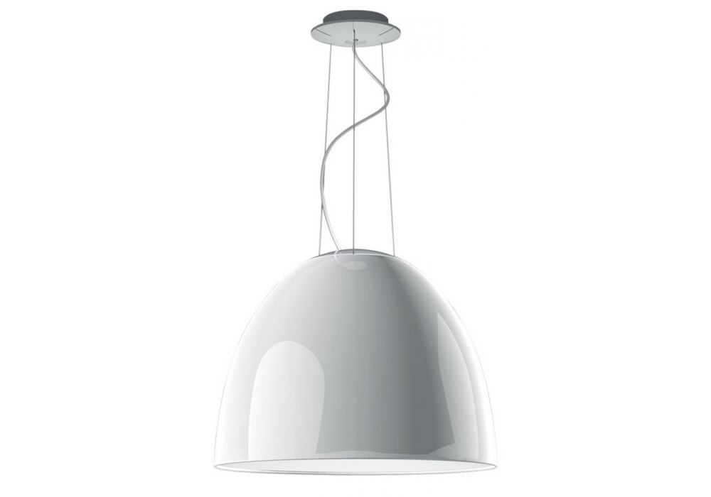 Nur Gloss Led von Ernesto Gismondi für Artemide entworfen ist eine runde Hängeleuchte mit Aluminiumkuppel und sandgestrahlter Glasoberkappe. Als Lichtquelle kommt ein LED-Typ zum Einsatz, der über die App gedimmt werden kann. Nur Gloss Led ist in verschiedenen Ausführungen erhältlich.