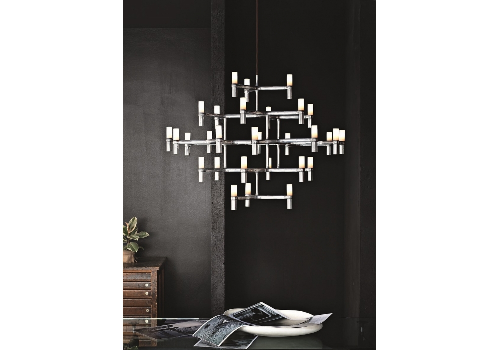Crown Major von Jehs + Laub für Nemo entworfen, ist ein Leuchter mit modularer Struktur aus Aluminium-Druckguss. Die Diffusoren sind aus sandgestrahltem Glas und nehmen eine dimmbare LED- oder Halogenlichtquelle auf. Crown Major ist in verschiedenen Ausführungen erhältlich.