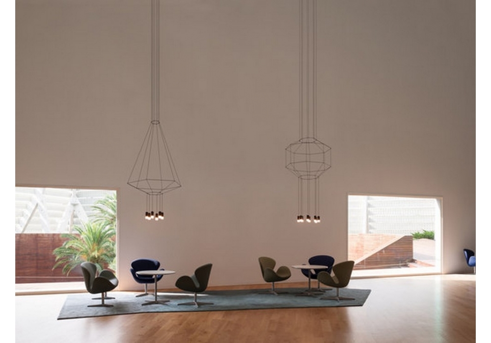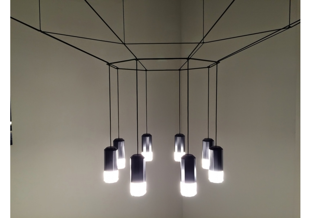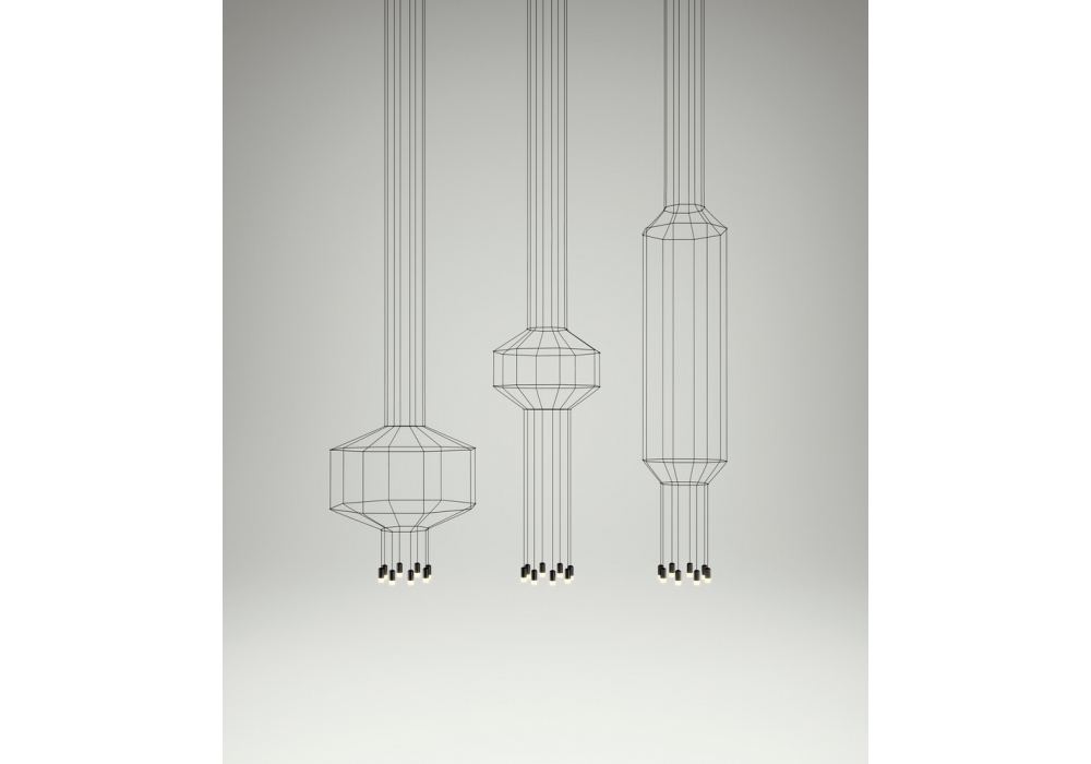 Wireflow 8 LED von Arik Levy für Vibia entworfen ist eine Hängeleuchte mit schwarz lackierter Stahlrohrstruktur. Der Körper der Diffusoren besteht aus zylindrischem Aluminium mit einem inneren Reflektor aus gepresstem Glas. Die verwendeten Lichtquellen sind vom Typ LED. Wireflow 8 LED ist in verschiedenen Modellen, Lichtquellentönen und Dimmbarkeiten erhältlich.