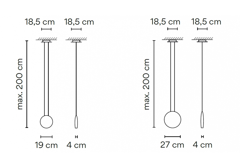 | Lampenschirm Durchmesser | Ø 19 cm; Ø 27 cm. |