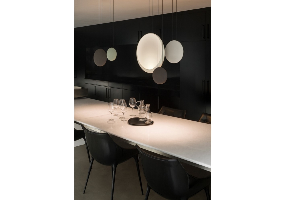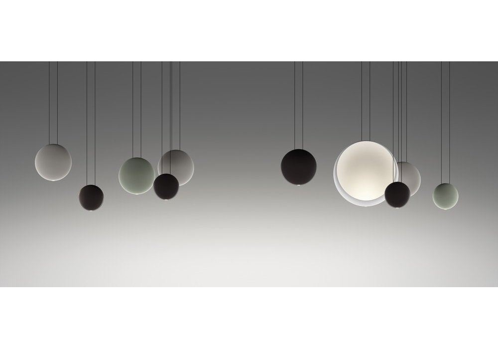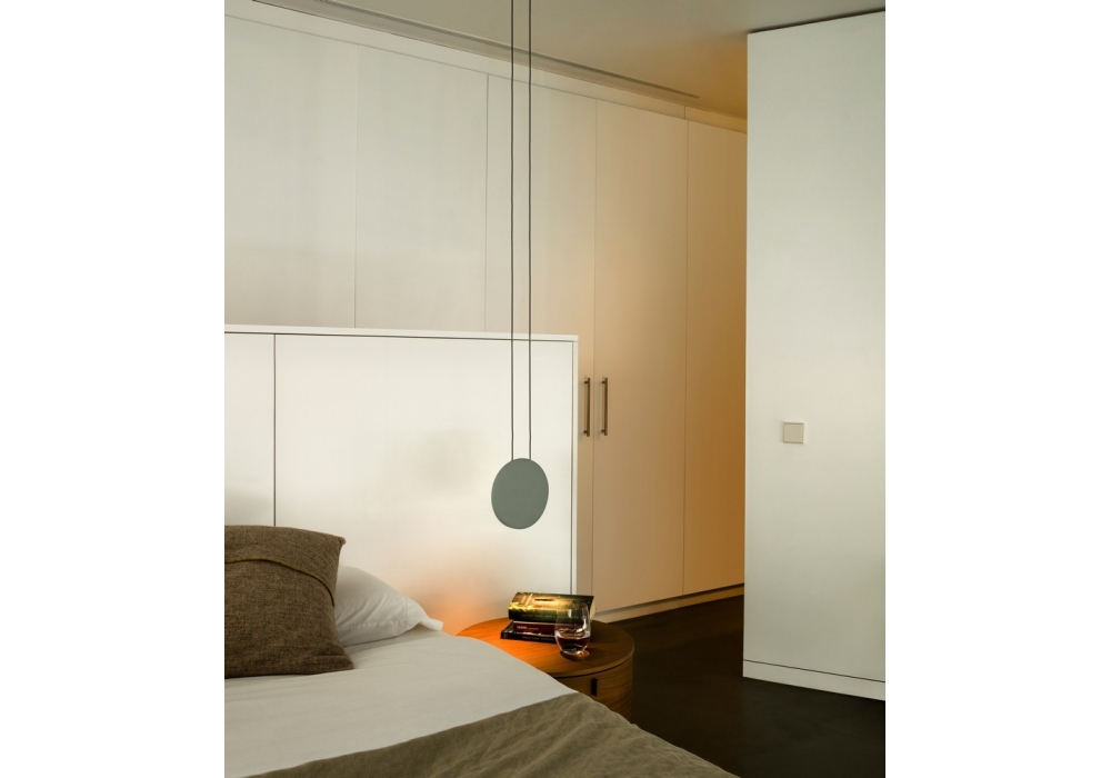 Cosmos, entworfen von Lievore, Altherr Molina für Vibia, ist eine Hängeleuchte mit Stahlrosette und kreisförmigem Leuchtenkörper aus lackiertem ABS. Der Diffusor besteht aus Polycarbonat und schirmt eine dimmbare LED-Lichtquelle ab. Cosmos ist in verschiedenen Modellen, Ausführungen, Lichtquellenschirmen und Dimmbarkeiten erhältlich.