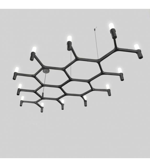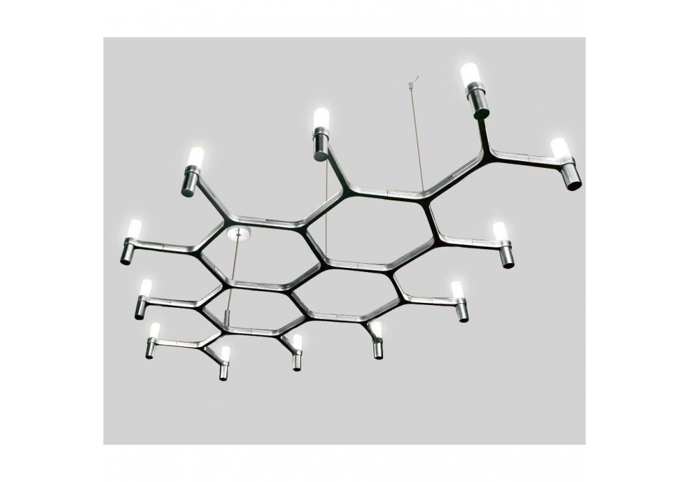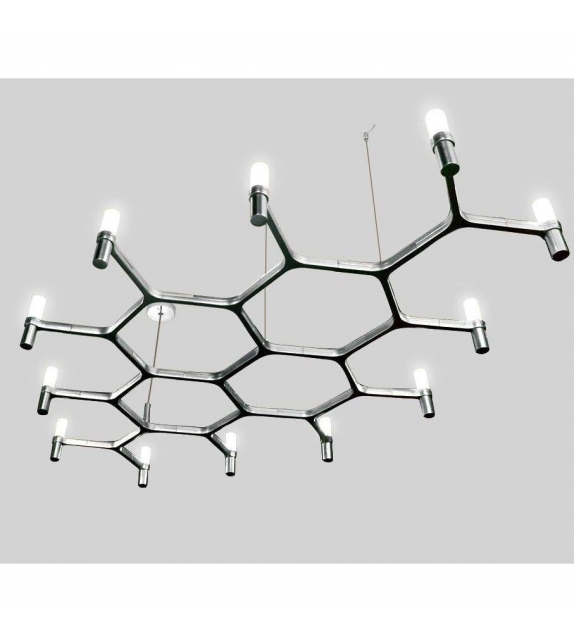 Crown Plana Mega von Jehs + Laub für Nemo entworfen, ist ein modularer Kronleuchter mit einer Struktur aus Aluminiumdruckguss und Diffusoren aus sandgestrahltem Glas. Als Lichtquelle wird LED oder Halogen verwendet. Crown Plana Mega ist in verschiedenen Ausführungen erhältlich.