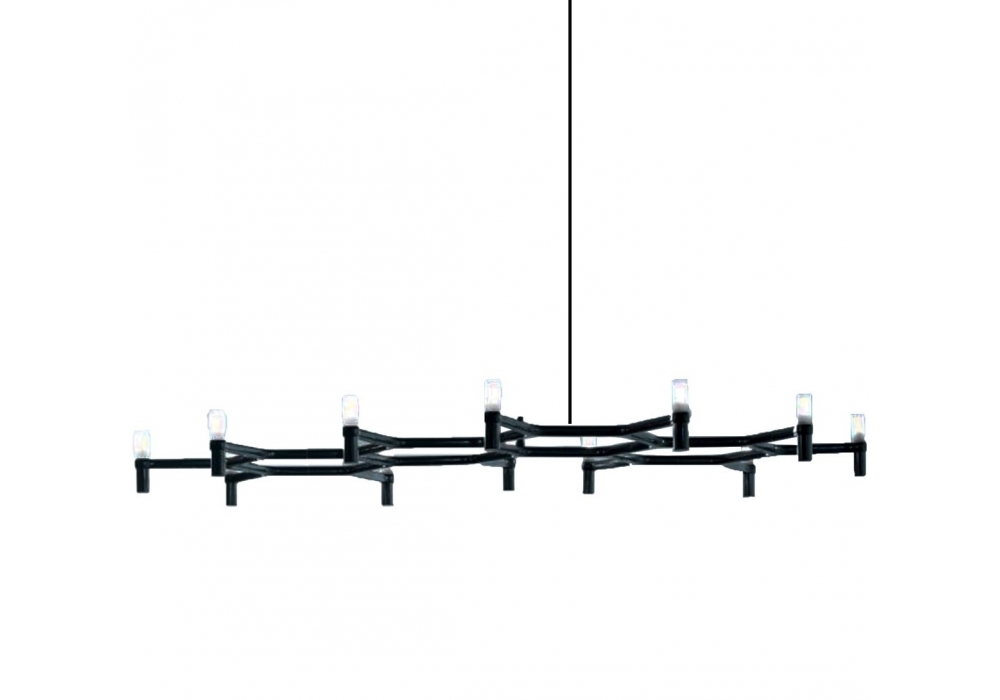 Crown Plana Major, von Jehs + Laub für Nemo entworfen, ist ein modularer Kronleuchter mit Struktur aus Aluminiumdruckguss und Diffusoren aus sandgestrahltem Glas. Als Lichtquelle wird LED oder Halogen verwendet. Crown Plana Major ist in verschiedenen Ausführungen erhältlich.