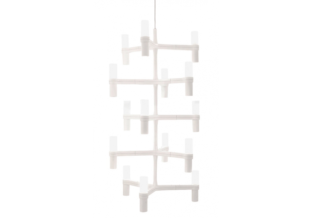 Crown Multi, von Jehs + Laub für Nemo entworfen, ist ein modularer Kronleuchter mit Struktur aus Aluminiumdruckguss und Diffusoren aus sandgestrahltem Glas. Als Lichtquelle wird LED oder Halogen verwendet. Crown Multi ist in verschiedenen Ausführungen erhältlich.