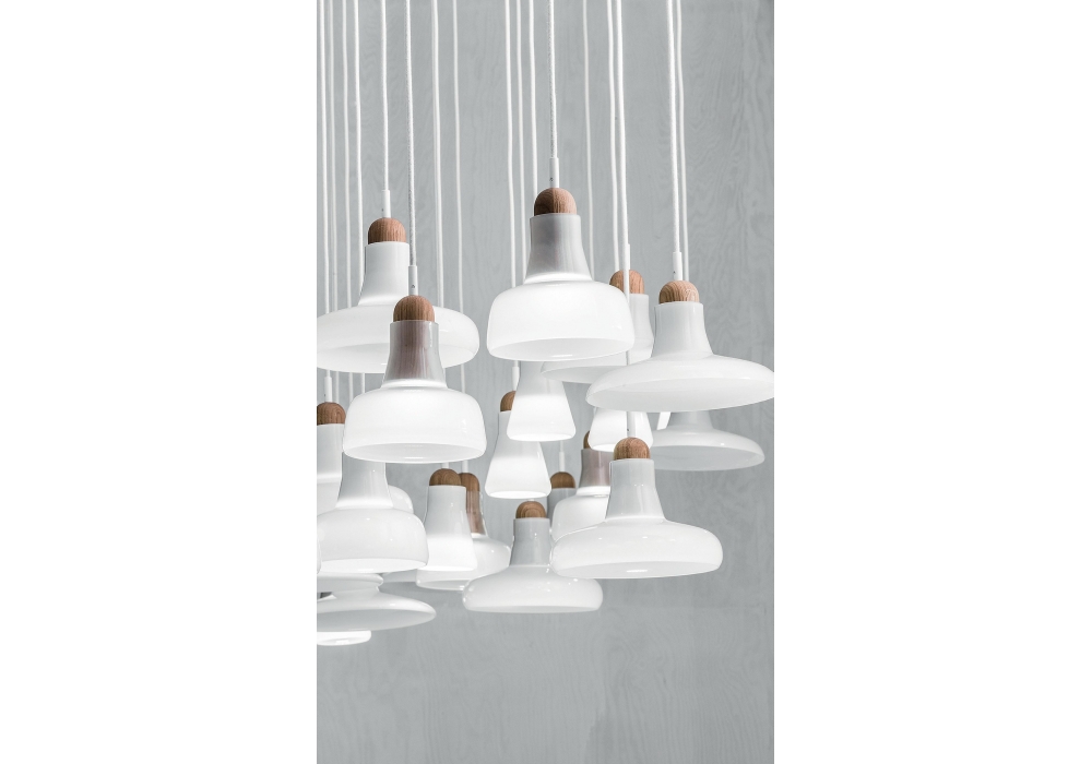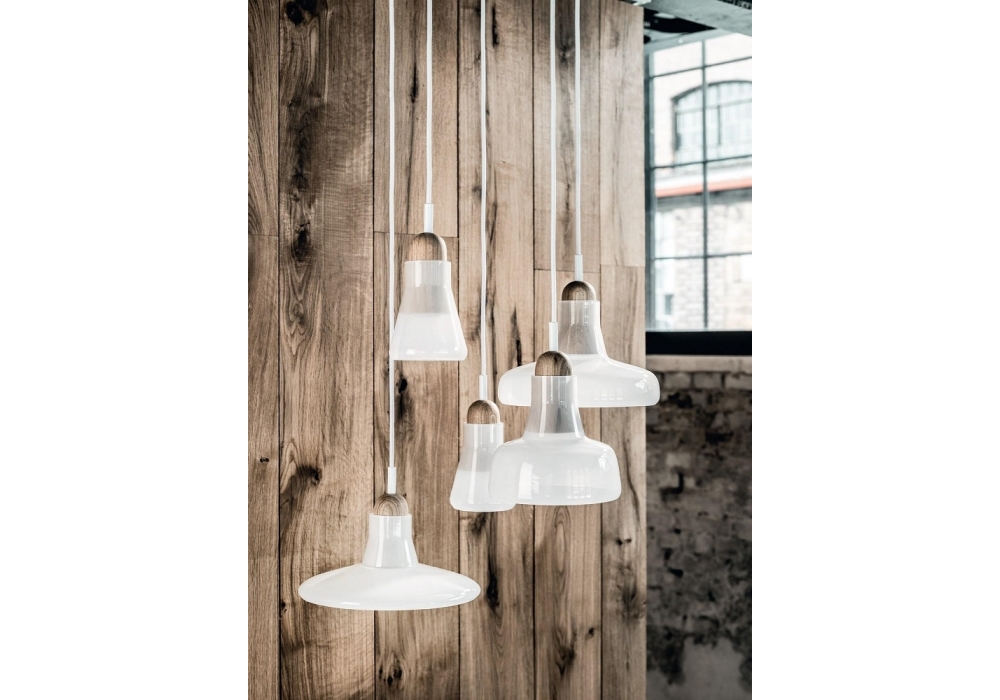 Shadows D108 von Lucie Koldová und Dan Yeffet für Brokis entworfen, ist eine Hängeleuchte mit Diffusor aus mundgeblasenem Glas in verschiedenen Farben und Behandlungen. Die Struktur besteht aus Holz und ist in verschiedenen Holzarten und Ausführungen erhältlich. Die gewählte Lichtquelle ist vom dimmbaren LED-Typ.