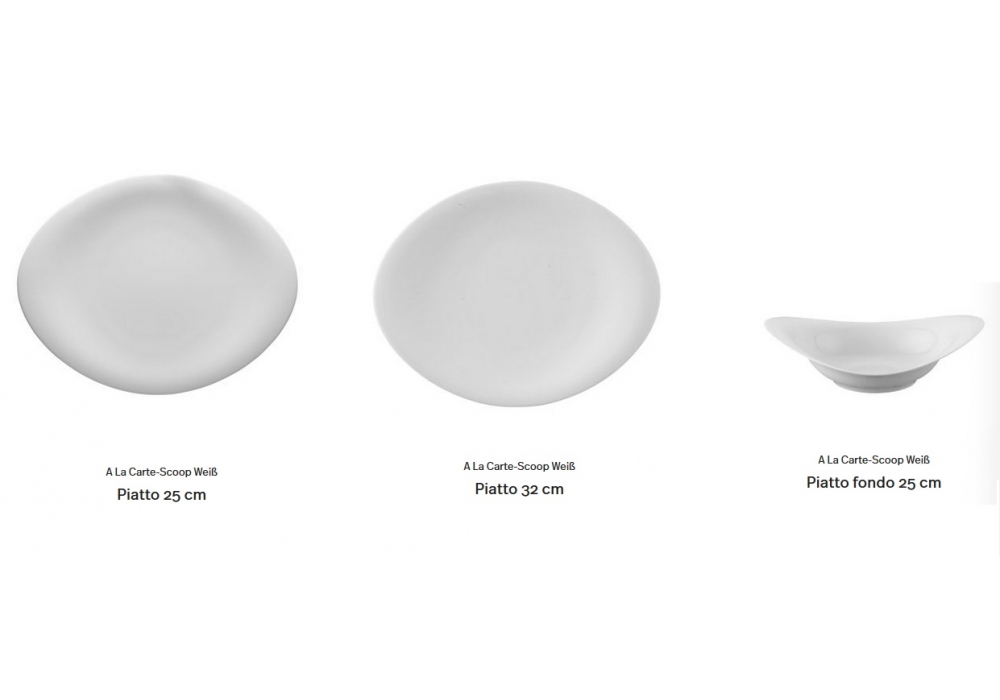 Scoop von Cairn Young und Robin Platt für Rosenthal entworfen, ist ein weißer Porzellanteller, der in drei Größen erhältlich ist.