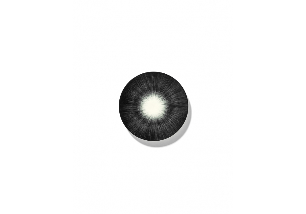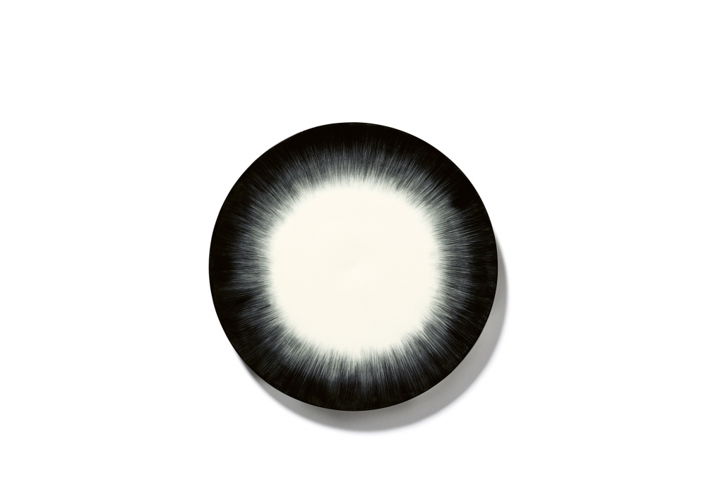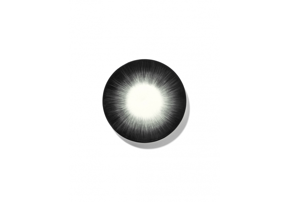 Plate dé Off von Ann Demeulemeester für Serax entworfen, ist ein runder Porzellanteller verfügbar in zwei Ausführungen: Weiß/Schwarz Var 5 oder Weiß/Rot Var 5. Plate ist in vier verschiedenen Größen erhältlich.