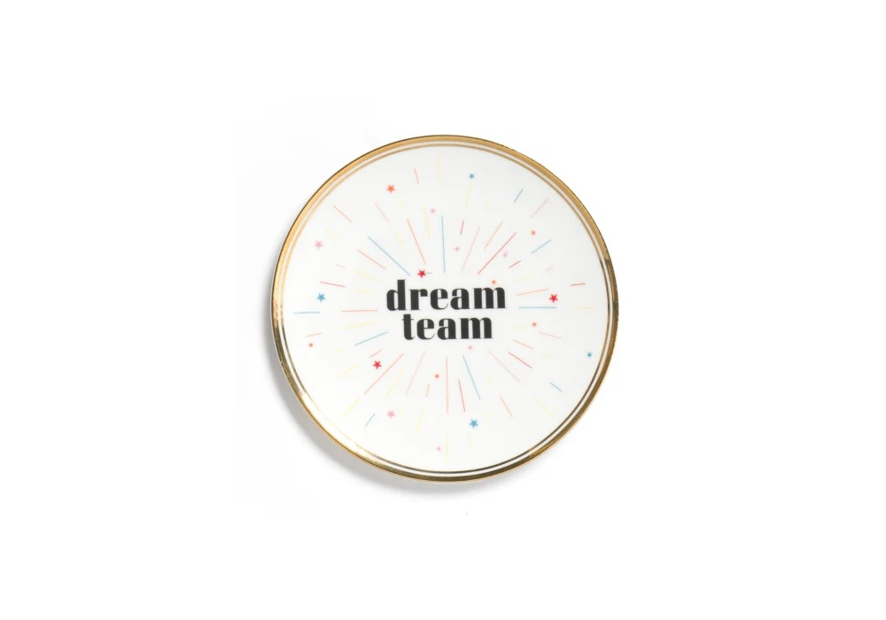 Dream Team von Bitossi Home entworfen, ist ein Teller aus Porzellan mit einem Aufkleber mit goldenem Rand. Spülmaschinenfest. Maximal 250 Spülgänge. Nicht für die Mikrowelle geeignet.