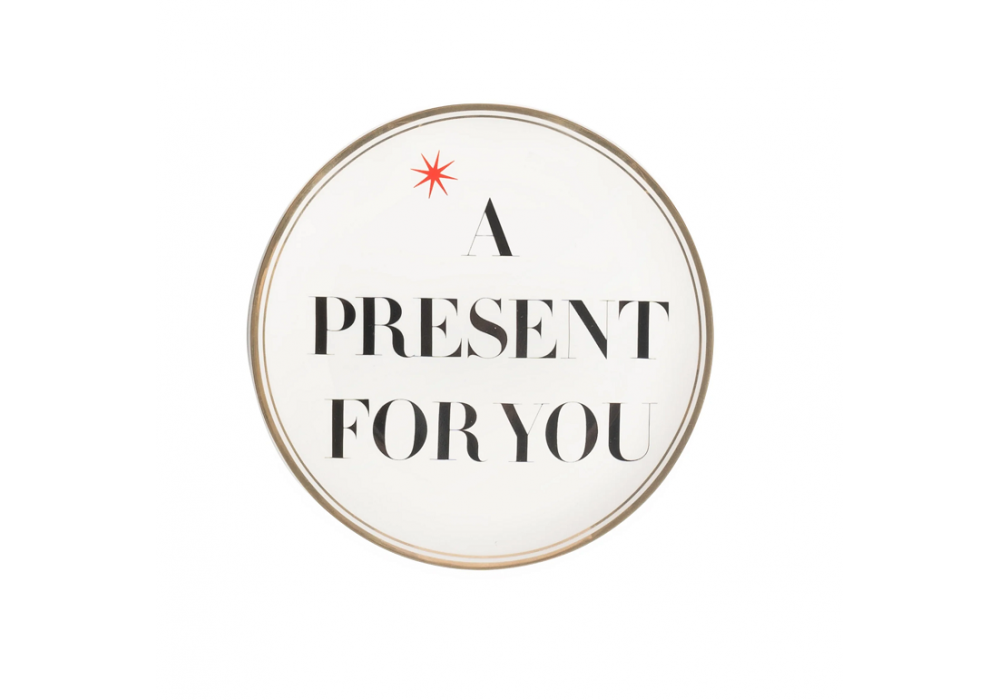 A Present for You von Bitossi Home entworfen, ist ein Teller aus Porzellan mit einem Aufkleber mit goldenem Rand. Spülmaschinenfest. Maximal 250 Spülgänge. Nicht für die Mikrowelle geeignet.