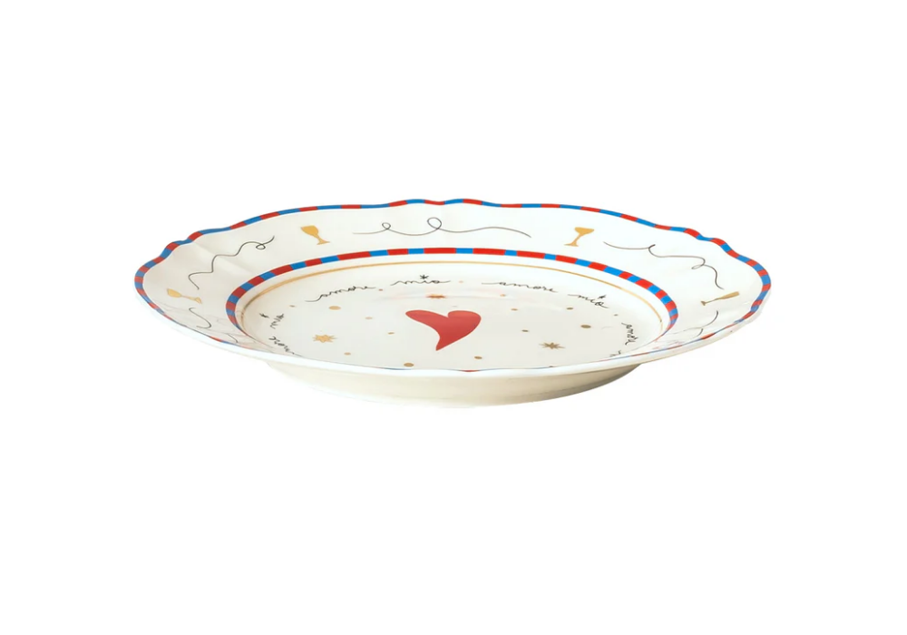 Cuore unterzeichnet von Design Pangea für Bitossi Home ist ein teller aus Porzellan mit goldenen Abziehbild und Details gemacht. Geeignet für die Spülmaschine und maximal 250 Wäschen. Nicht für die Mikrowelle geeignet.