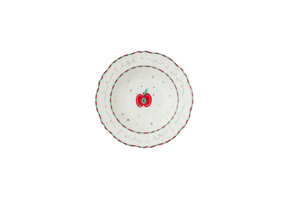 Mela unterzeichnet von Design Pangea für Bitossi Home ist ein tiefen teller aus Porzellan mit goldenen Abziehbild und Details gemacht. Geeignet für die Spülmaschine und maximal 250 Wäschen. Nicht für die Mikrowelle geeignet.