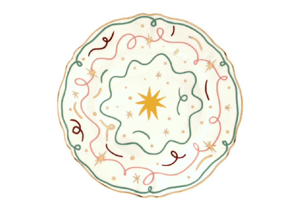 Stella unterzeichnet von design Pangea für Bitossi Home ist ein Servierteller aus Porzellan mit goldenen Abziehbild und Details gemacht. Geeignet für die Spülmaschine und maximal 250 Wäschen. Nicht für die Mikrowelle geeignet.