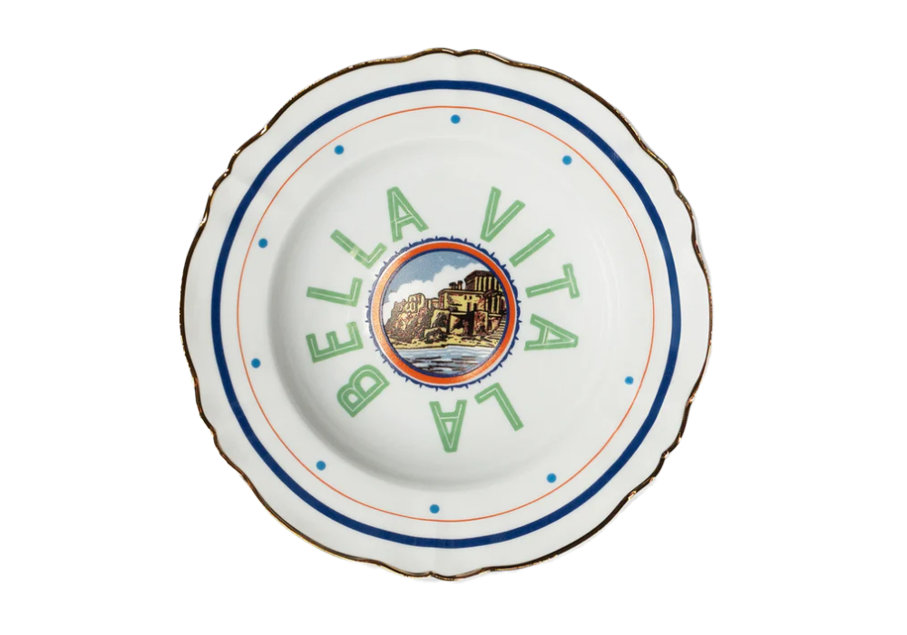 Mare unterzeichnet von Design Sam Baron für Bitossi Home ist ein tiefen teller aus Porzellan mit goldenen Abziehbild und Details gemacht. Geeignet für die Spülmaschine und maximal 250 Wäschen. Nicht für die Mikrowelle geeignet.