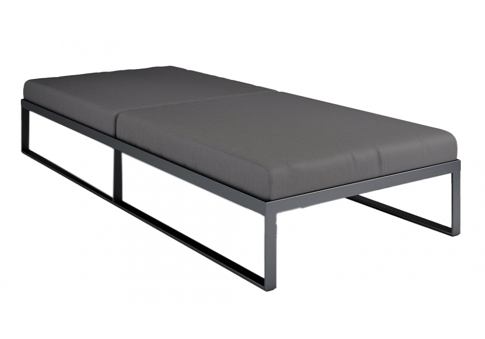 Garden Easy von Broberg & Ridderstråle für Röshults entworfen, ist ein Daybed mit anthrazitfarbener Edelstahlstruktur und Sitzkissen aus wetterbeständigem Sunbrella®-Stoff, verfügbar in mehreren Polsterungen.