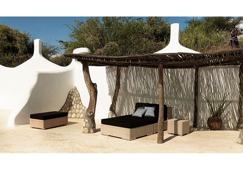 Lounge von Frank Ligthart für Dedon entworfene Lounge ist ein Tagesbett aus der Lounge-Kollektion. Es besteht aus Aluminium und Faser. Mit Stoff bezogene Kissen in verschiedenen Ausführungen erhältlich.