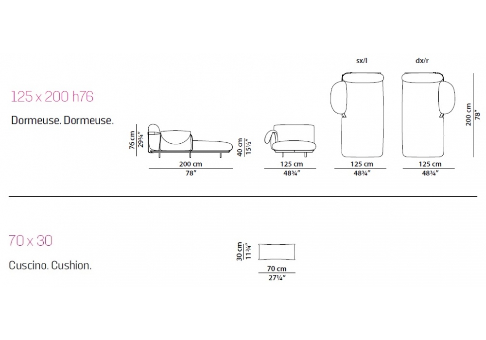 Narciso von Studiopepe für Baxter entworfen, ist eine Dormeuse mit pulverbeschichtetem Edelstahl 316, verfügbar in hellgrauen und dunkelgrauen Farben. Füllung aus Polyurethanschaum unterschiedlicher Dichte mit Abdeckungen aus Acrylfasern. Dekorative Kissen aus Polyurethanschaum unterschiedlicher Dichte mit Bezug aus Acrylfaser.