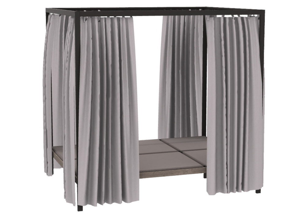Allaperto Urban, von Matteo Thun, Antonio Rodriguez für Ethimo entworfen, ist ein Tagesbett mit Struktur aus lackiertem Metall und gebeiztem Teakholz, das mit Ethitex-Stoff in Cappuccino-Farbe bezogen ist.