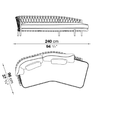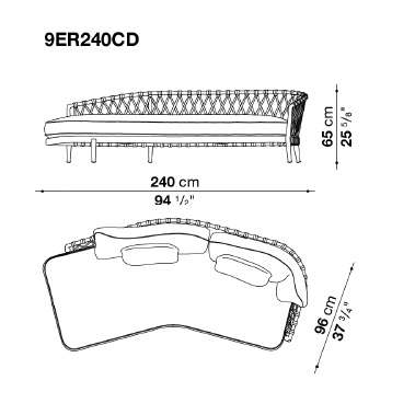Erica von Antonio Citterio für B&B Italia Outdoor entworfen, ist eine Dormeuse mit lackierter Aluminiumstruktur und Polypropylenfasergewebe in verschiedenen Farbkombinationen. Kissenbezug aus Stoff mit der Möglichkeit, verschiedene Ausführungen/Stoffe für Sitz- und Rückenkissen zu wählen.