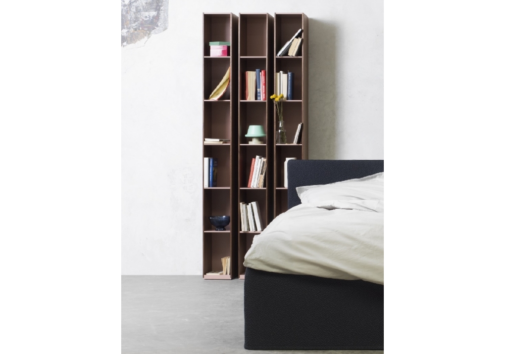 Arda, von Alessio Bassan für Capodopera entworfen, ist ein Bücherregal aus glänzendem, matt lackiertem MDF oder furnierten Holzplatten in mehreren Ausführungen