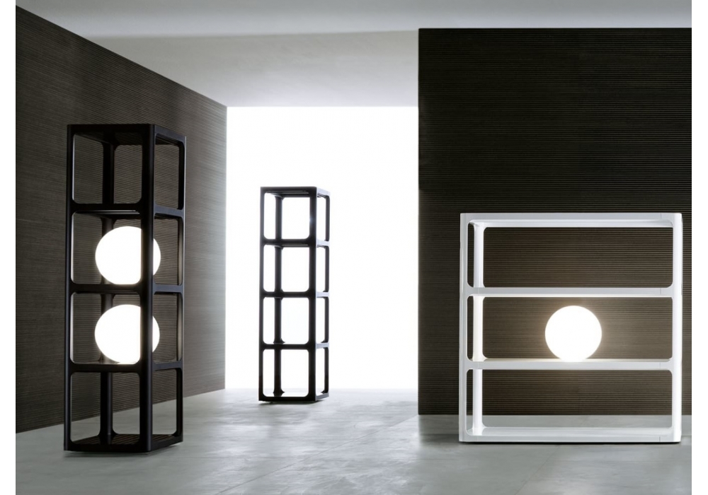 Sixty von Giuseppe Bavuso für Rimadesio entworfen, ist Ein Bücherschrank mit Minimalästhetik: essenzielle Linien gekennzeichnet von den runden Verbindungen zwischen Struktur und Böden und von ihren exklusiven unsichtbaren Gelenken, die ein maximales formelles Glätten garantieren. Subtile Referenz an den Design der sechziger Jahren, interpretiert mit Strenge und Originalität in einer extrem aktuellen ästhetischen Definition.