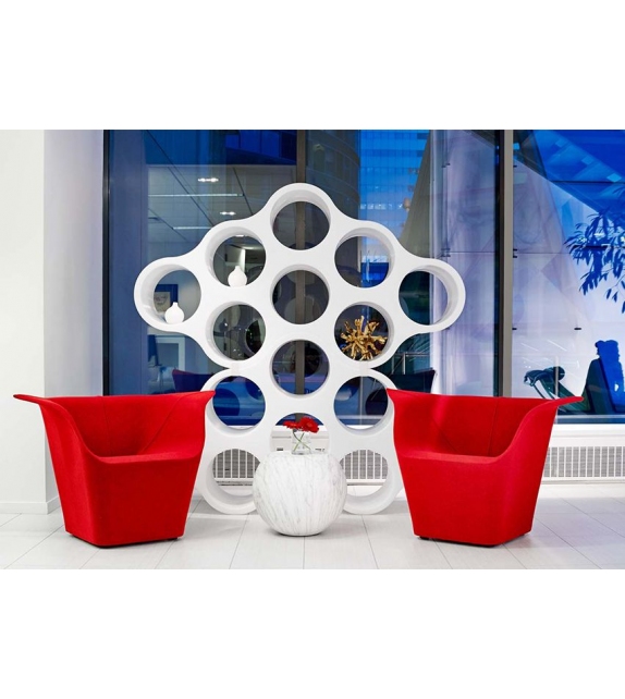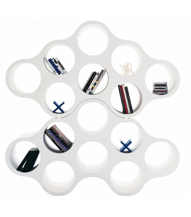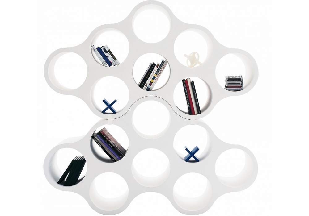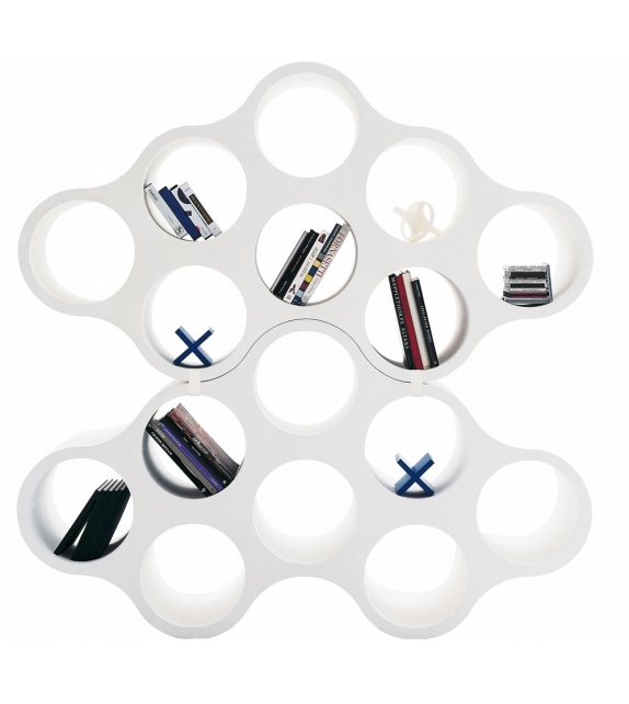 Cloud von Ronan & Erwan Bouroullec für Cappellini entworfen, ist ein doppelseitiges modulares Bücherregal mit Durchgangsfächern. Die Module können mittels Druckklammern miteinander verbunden werden.