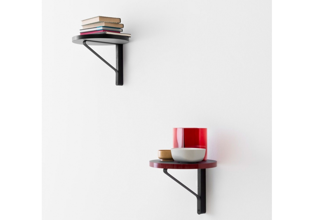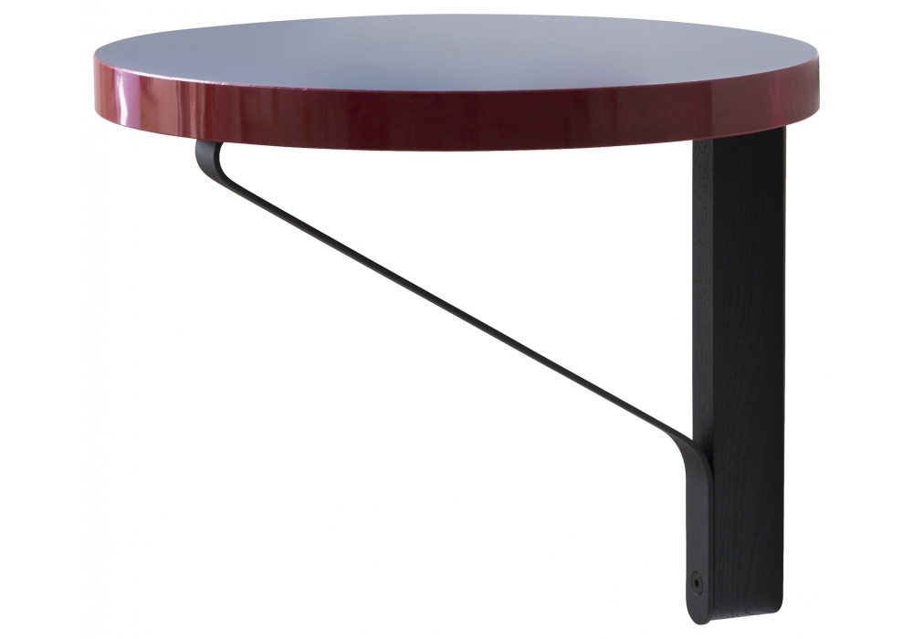 REB 007 Kaari Shelf entworfen von Ronan & Erwan Bouroullec für Artek, ist ein Wandregal rund. Oberseite mit Linoleumoberfläche (Dicke ca. 24 mm) und ABS-Kante. Wandhalterung aus massiver natürlicher Eiche oder schwarz mit einem Schutzlack gebeizt.