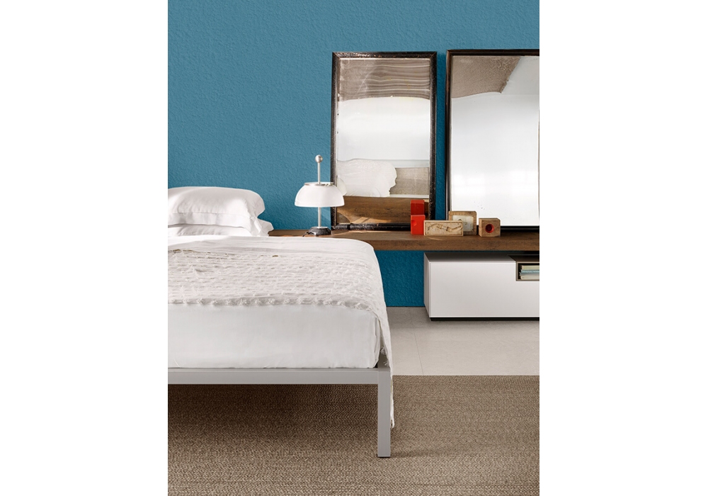 Link 1 von Bruno Fattorini für MDF Italia entworfen, ist ein Regal mit Platte aus mitteldichten Holzfaserplatten, bezogen mit verschiedenen Materialien und Farben. Die Struktur mit Tragbügel ist aus Stahl und aluminiumgrau pulverbeschichtet. und ist in der Neigung verstellbar. Das Regal ist in verschiedenen Größen erhältlich.