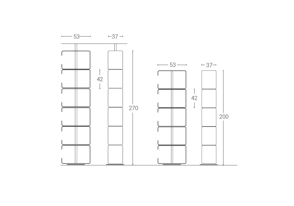 | Abmessungen | 53 x 37 x H 270 cm; 53 x 37 x H 200 cm. |
