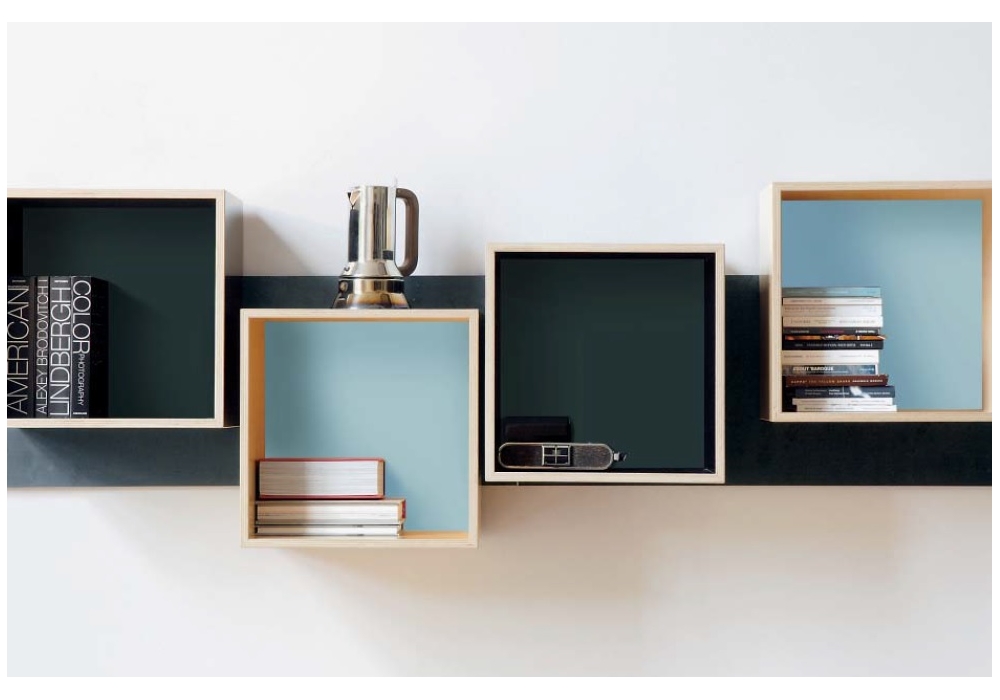Magnetique von Swen Krause für Moormann entworfen, ist ein Regalsystem aus Stahlblech und Kästen aus Birkensperrholz. Das Stahlblech kann horizontal oder vertikal an der Wand befestigt werden. Die Boxen in 4 verschiedenen Ausführungen können beliebig magnetisch angebracht werden.