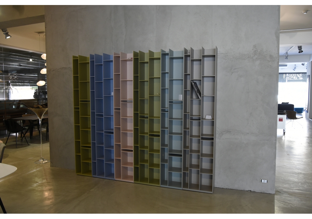 Random 2C-3C von Neuland Industriedesign fur MDF Italia ist eine Bücherregal-Sammlung mit offenen oder geschlossenen Fächern in Standardgrößen und einem Fach mit Schubkasten. Aus MD-Holzfaserpaneelen mit mikro-gaufrierter Lackierung. Rückwand mit Melaminbeschichtung. Verstellbare Füße bis 15 mm. Aus Sicherheitsgründen muss das Gerät an der Wand befestigt werden. Es wird stattdessen empfohlen, flankierte Einheiten nicht horizontal zusammen zu fixieren.