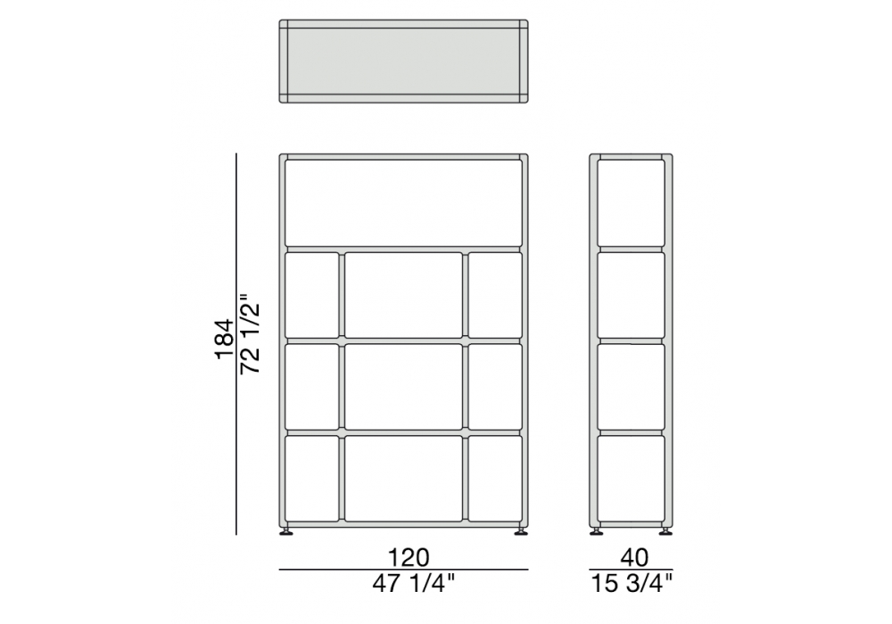 Biblo, von T. Colzani für Porada entworfen, ist ein Bücherregal aus massivem Canaletta-Nussbaum oder mattlackiertem geschlossenporigem in verschiedenen Ausführungen. Gestell aus gebürstetem bronziertem Messing.