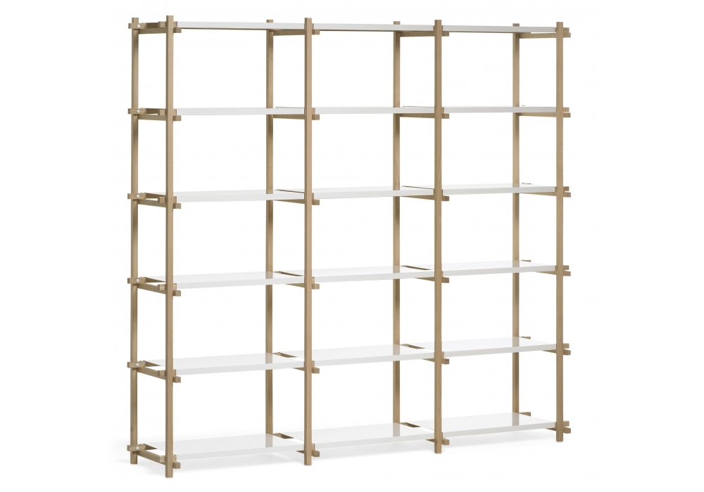 Woody High hergestellt und entworfen von Hay, ist ein Regalsystem mit einer Struktur aus massiver Eiche mit Regalen aus weiß pulverbeschichtetem Stahl. Verfügbar in verschiedenen Abmessungen.
