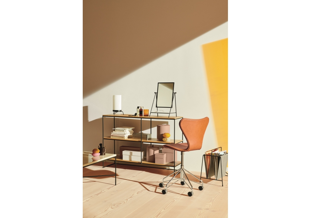 Planner™, von Paul McCobb für Fritz Hansen entworfen, ist ein Regalsystem mit Gestell aus schwarz pulverbeschichtetem Stahl und Regalen aus Eichenfurnier. Erhältlich in drei Modellen.