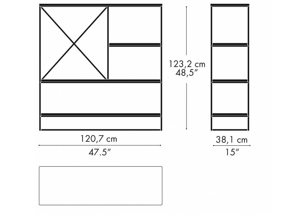 | Abmessungen | 120.7 x 38.1 x H 84.4 cm; 120.7 x 38.1 x H 123.2 cm; 120.7 x 38.1 x H 165 cm. |