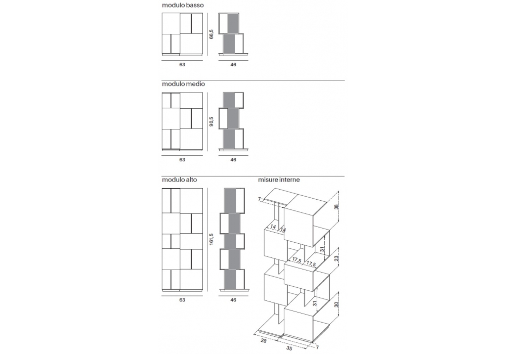 | Abmessungen | 63 x 46 x H 66,5 cm; 63 x 46 x H 90,5 cm; 63 x 46 x H 161,5 cm. |