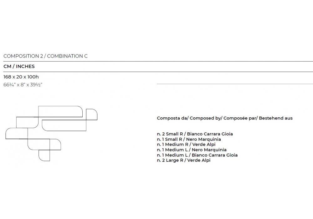 | Abmessungen | 20 x 20 x H 20 cm (Small); 40 x 20 x H 20 cm (Medium); 80 x 20 x H 20 cm (Large). |