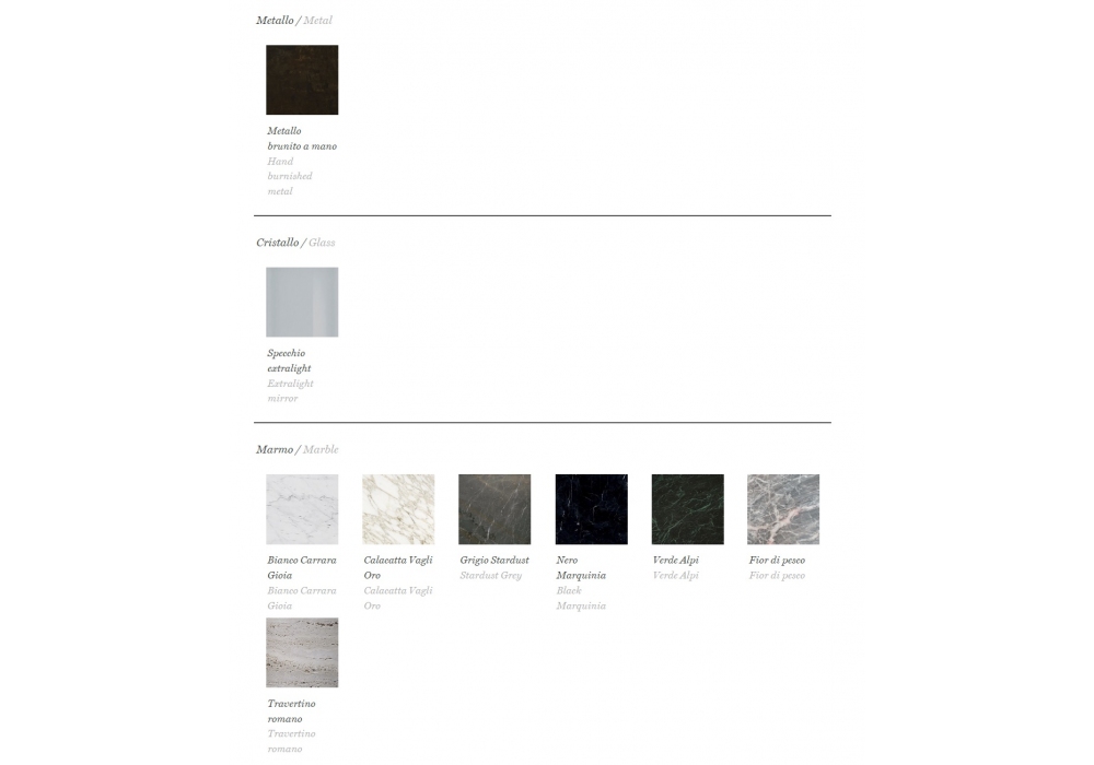 Roundcut von Studiopepe für Gallotti & Radice entworfen, ist ein Regalsystem aus brüniertem Metall. Marmorfront in verschiedenen Ausführungen erhältlich. Linke und rechte Version für jede Größe (klein, mittel, groß). Die Regale können in zwei verschiedenen Positionen (mit Regal oben oder unten) installiert werden, indem sie um 180 ° gedreht werden.